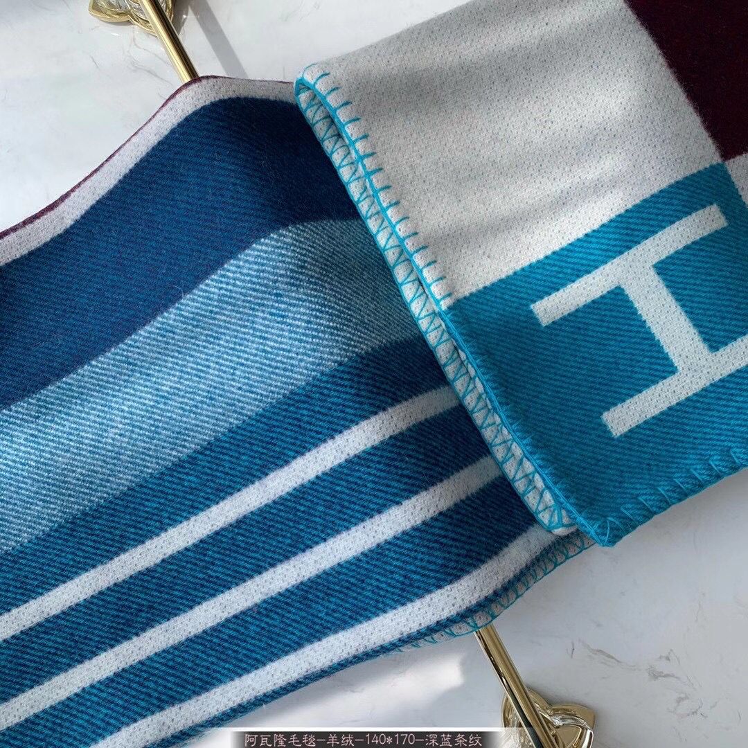 HM Avalon Throw Blanket Ecru Indigo Wool Cashmere