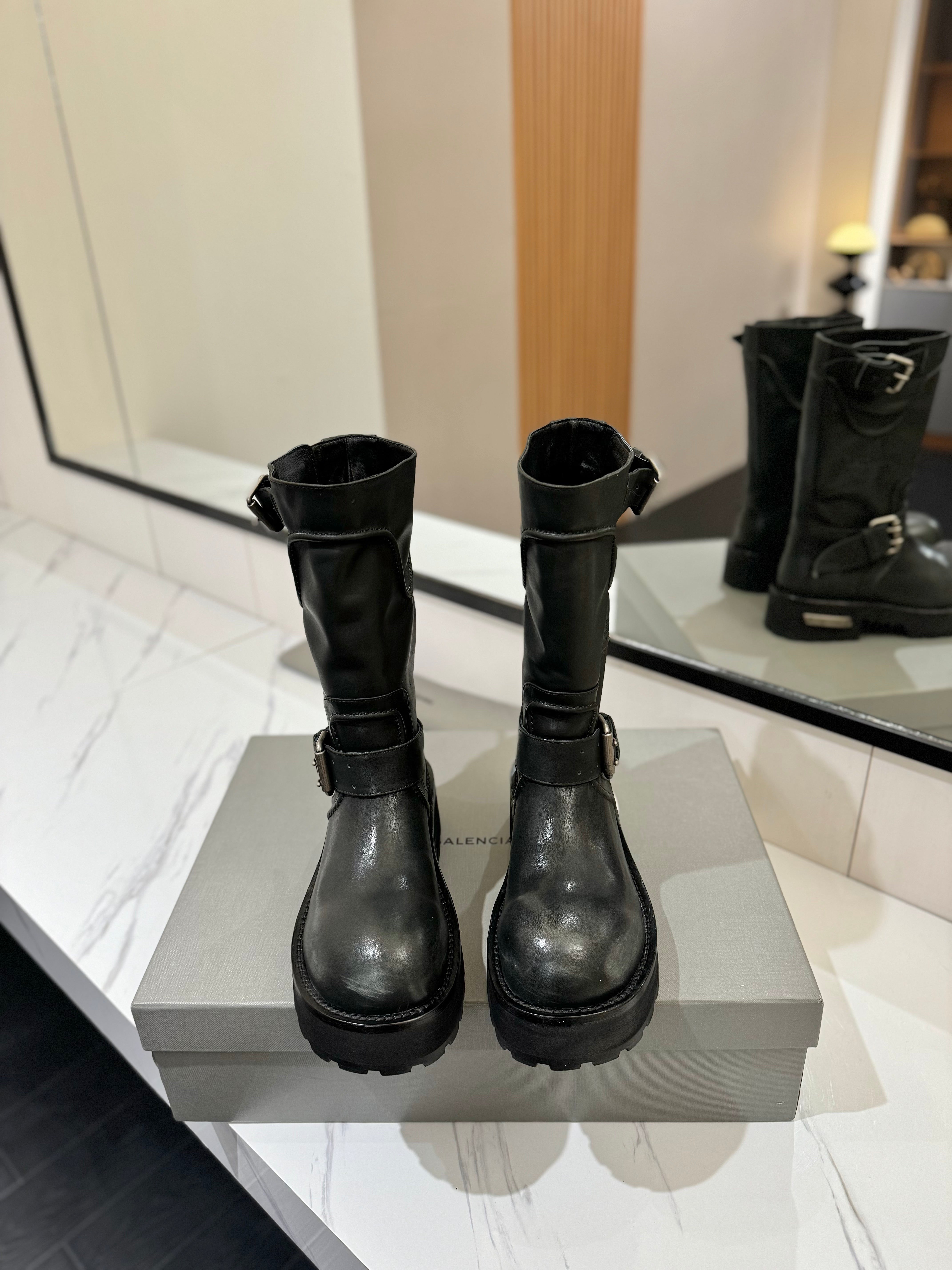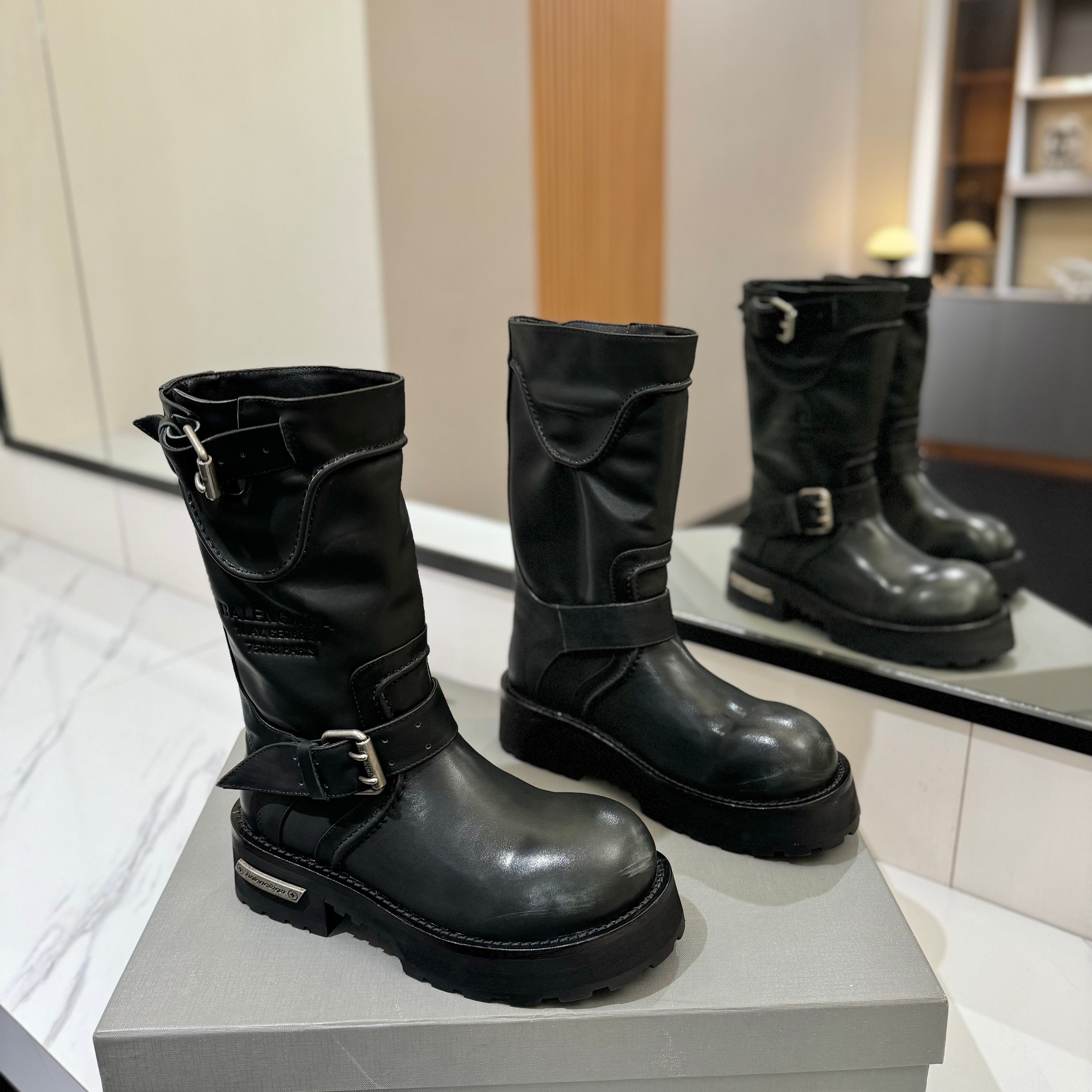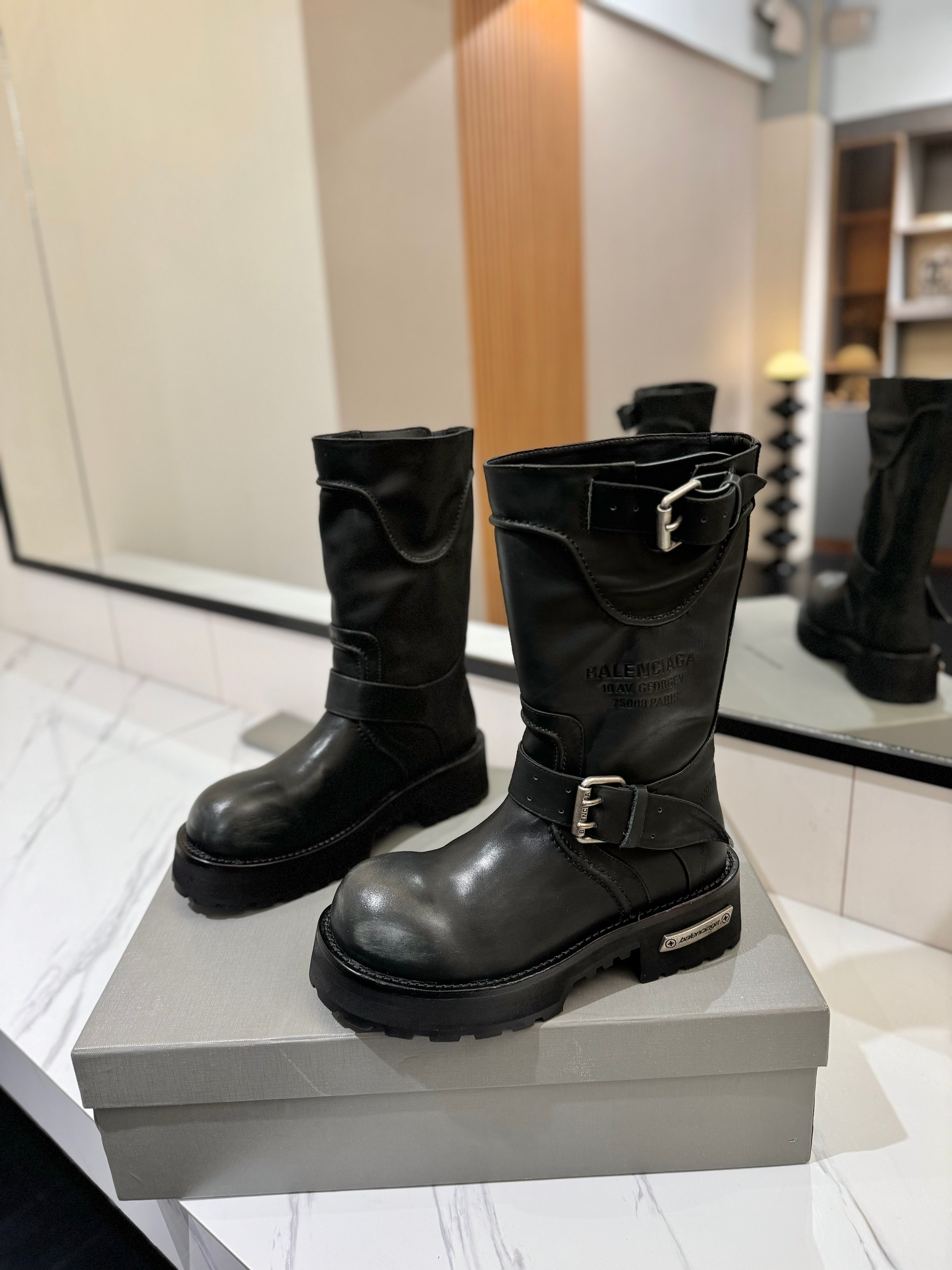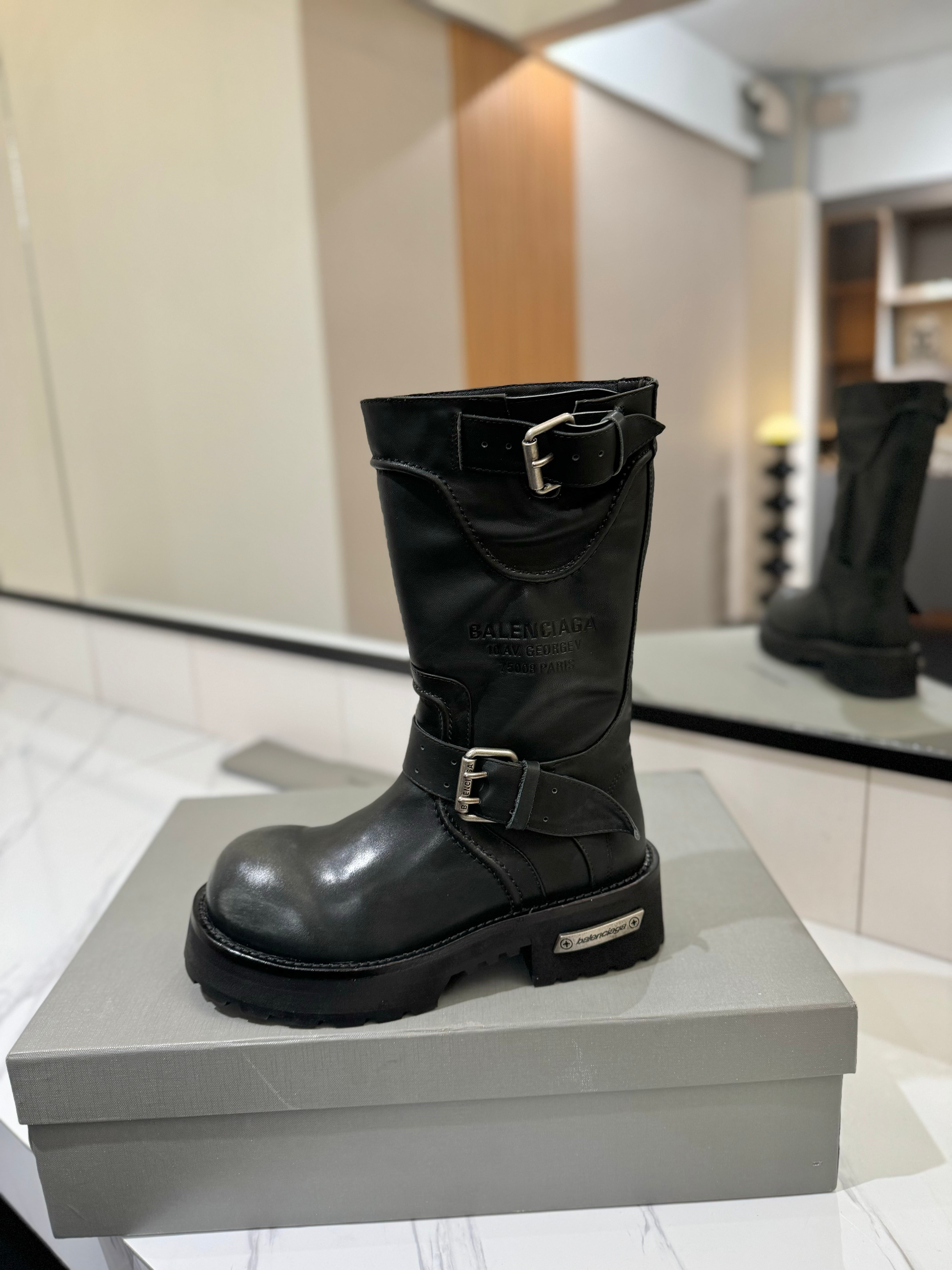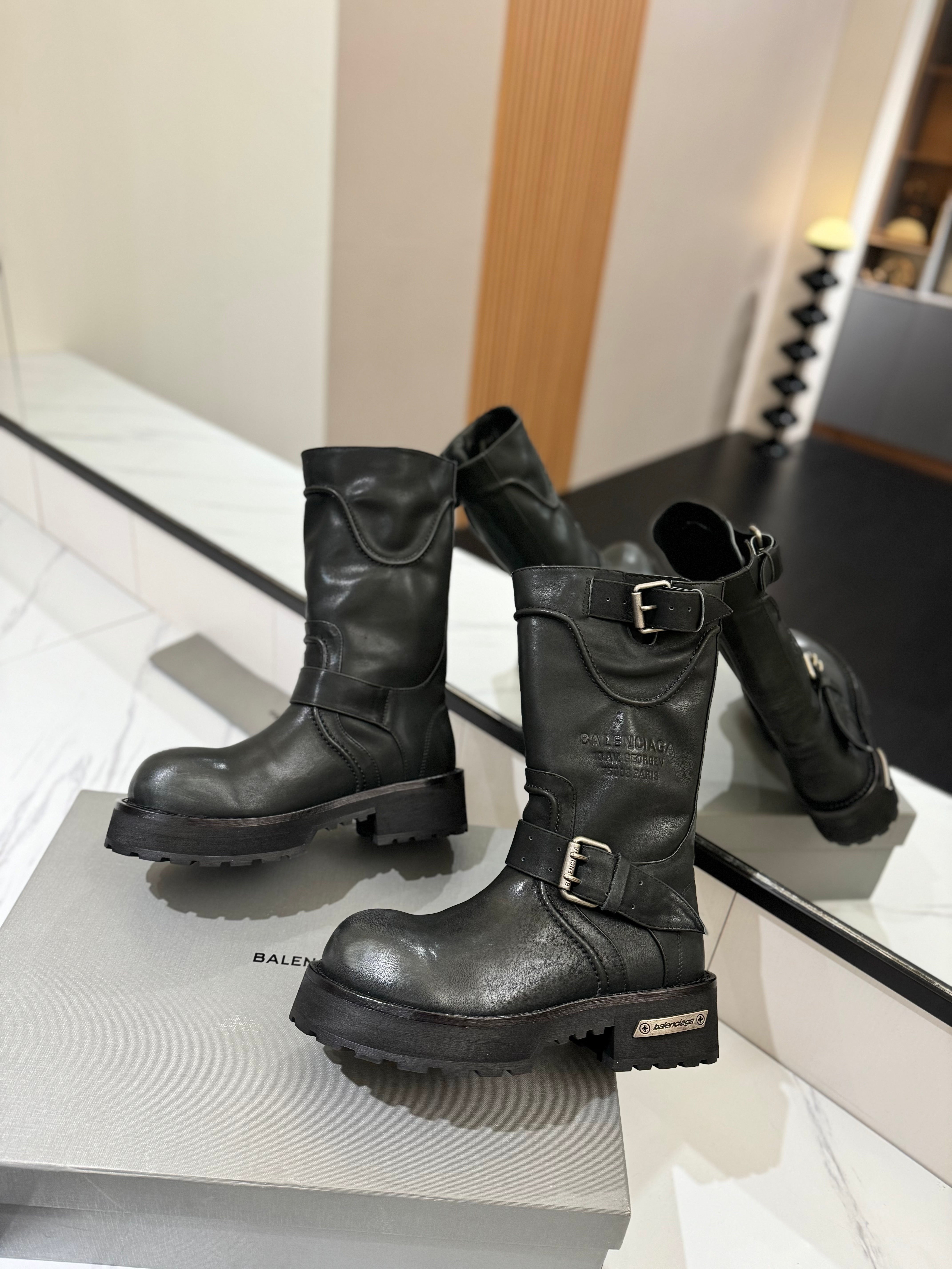 Balenciaga 25s buckled mid-calf boots black calfskin 467613