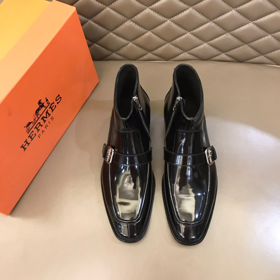 HM Men's Monk Boot Black Patent Leather 527898