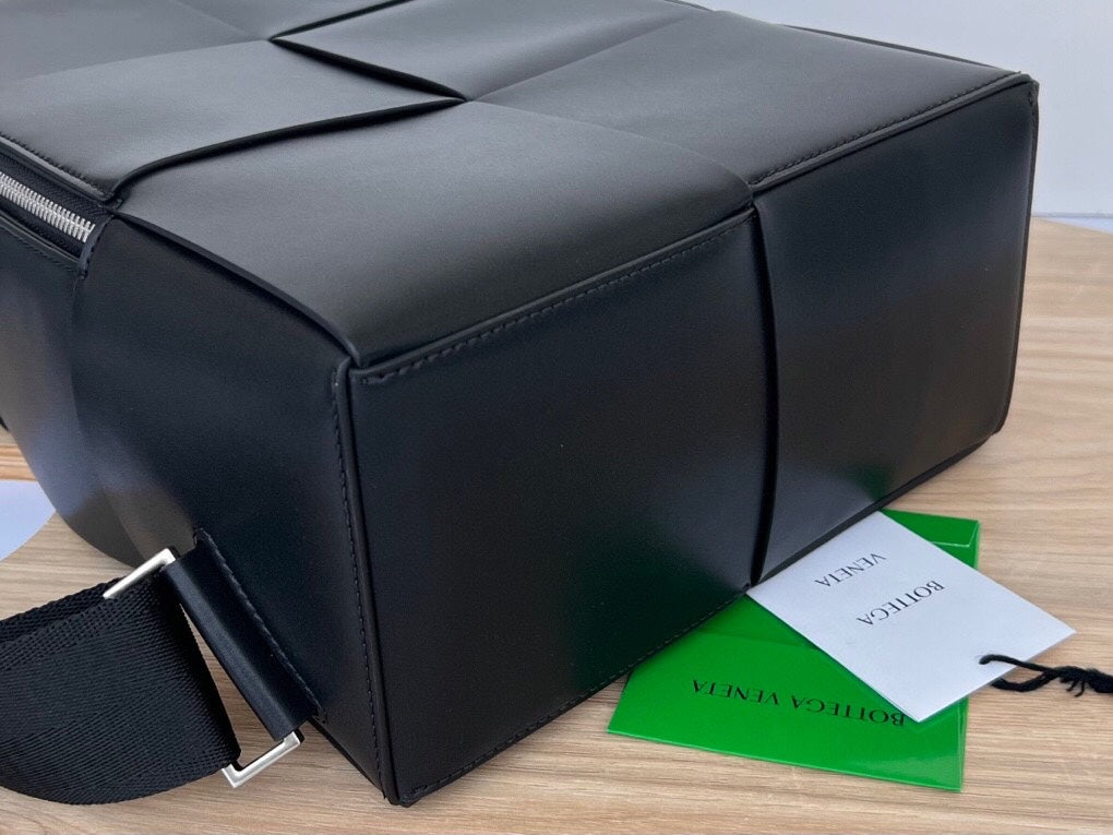 WOVEN BACKPACK 34 IN BLACK LAMBSKIN
