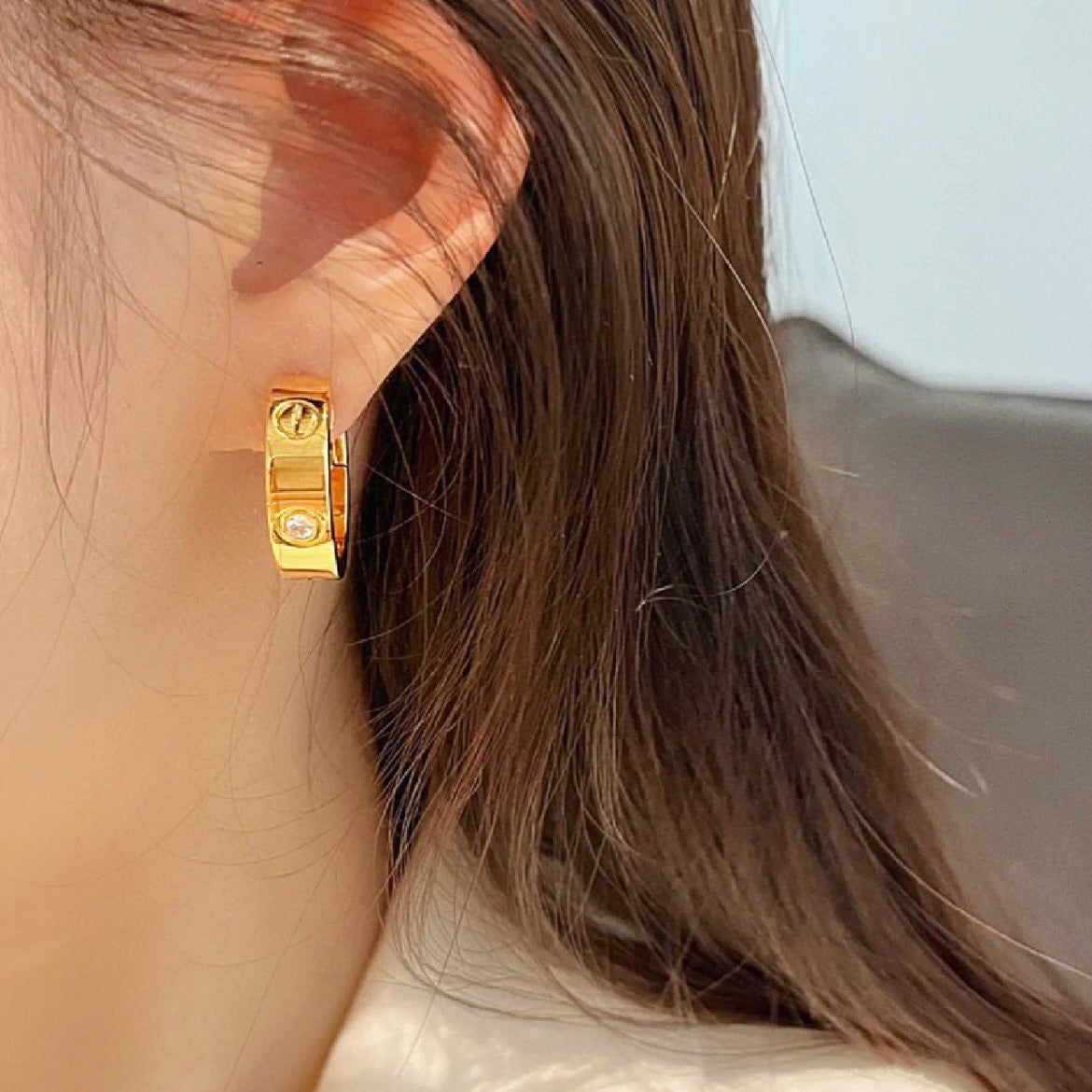 LOVE DIAMOND GOLD HOOP EARRINGS