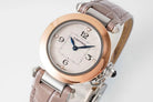pasha 30mm quartz pink gold white dial light brown leather