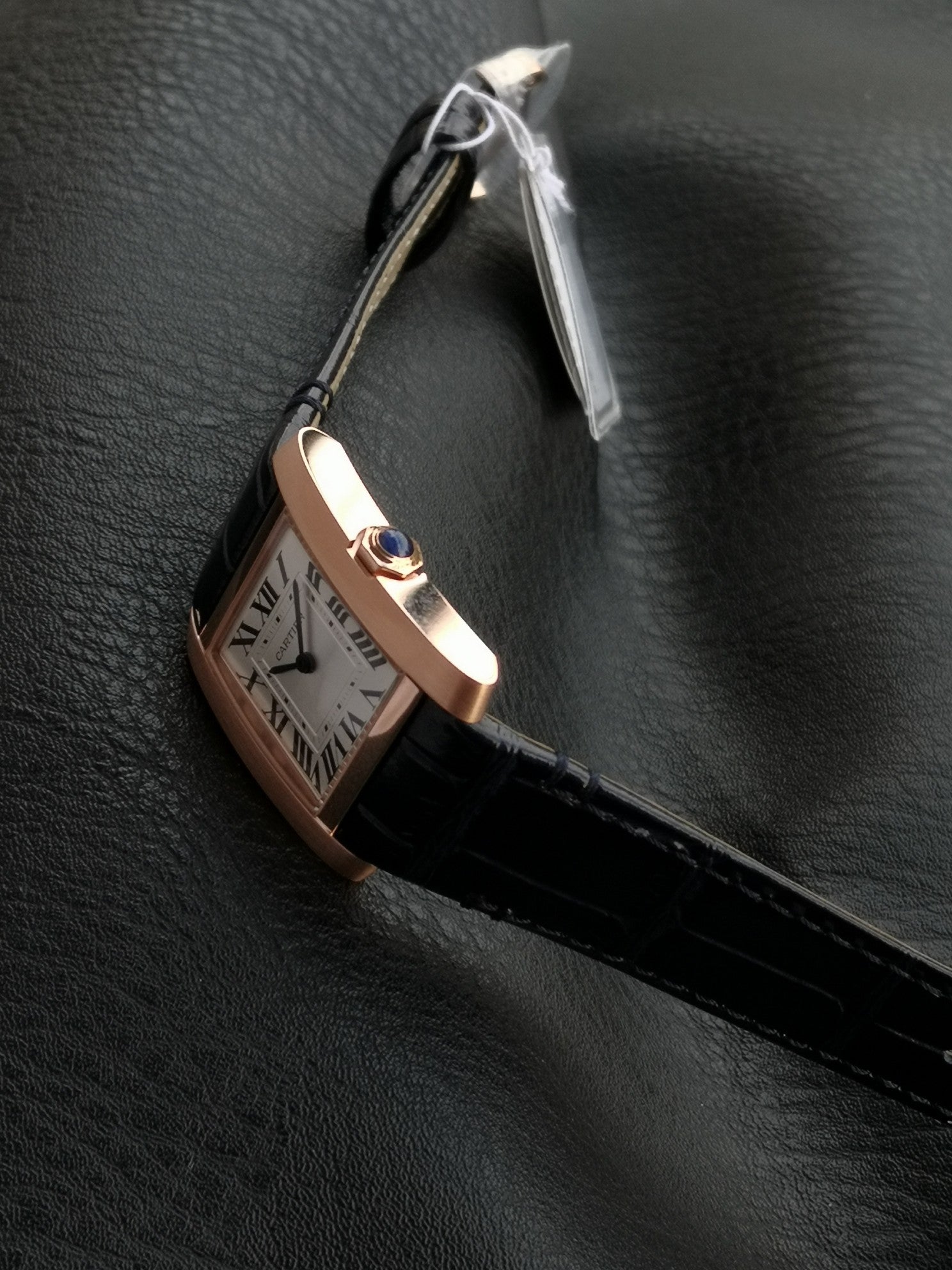 Tank Francaise Pink Gold Case Black Leather Strap