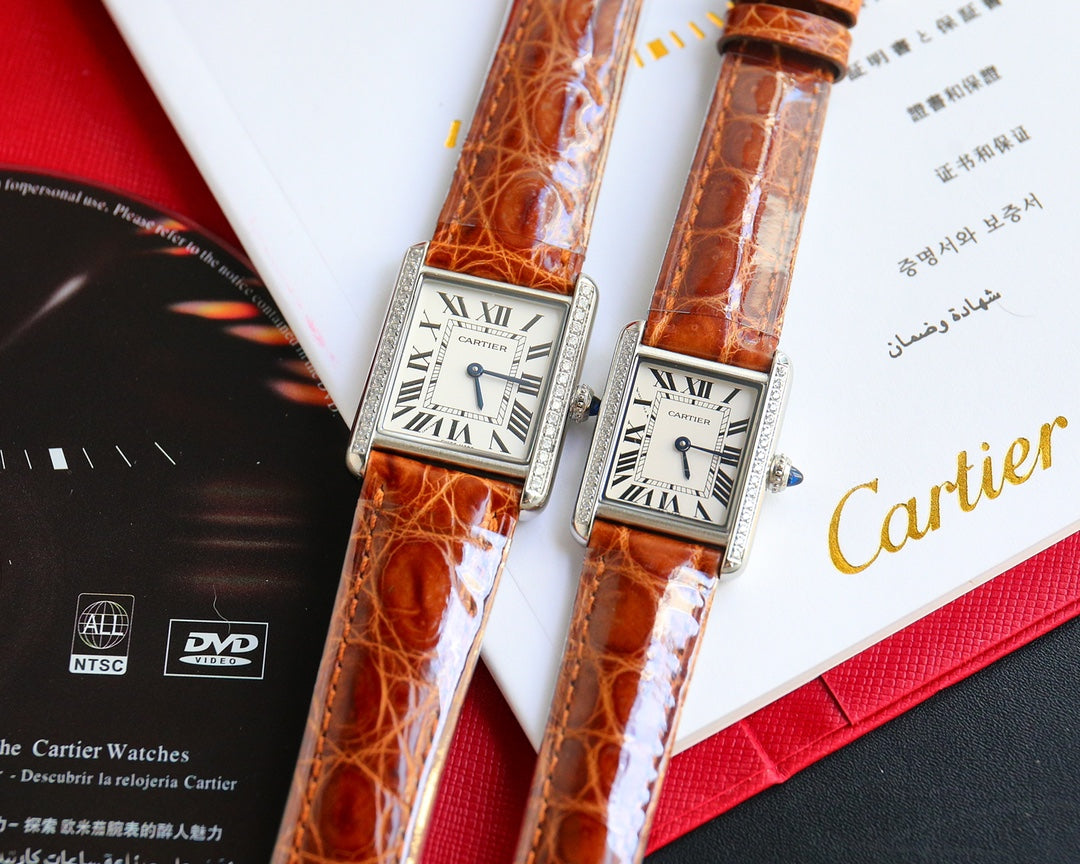 TANK MUST SMALL STEEL DIAMOND BEZEL LEATHER STRAP EWHITE DIAL