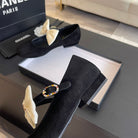 BALLET FLAT BLACK SUEDE LAMBSKIN WITH WHITE BOW