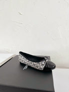 Ballet Flats White Cloth Black Patent Calfskin