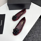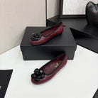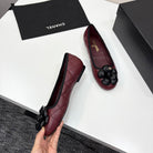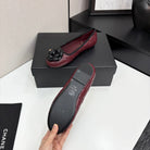 CC 25 Ballet Flat Flower Burgundy Quilted Calfskin