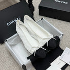 CC 25p Ballet Flat White Cotton Mesh Fabric Grosgrain