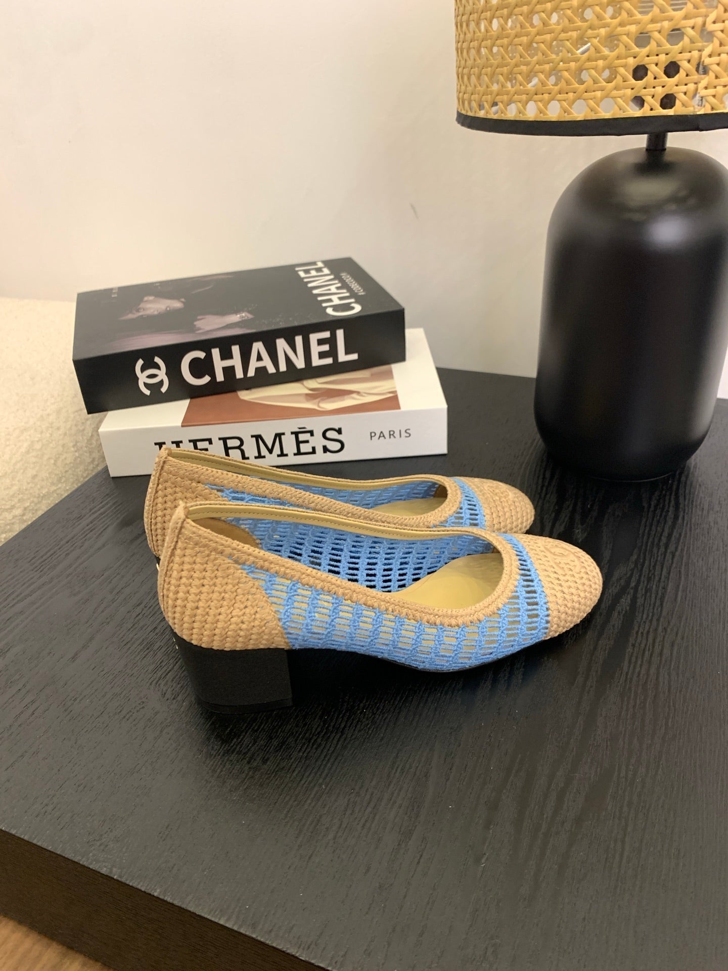 CC 25p Ballet Heel 50mm Blue Beige Raffia