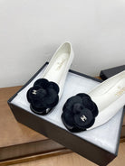 CC Ballet Flats White With Camellia Black Lambskin