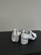 CCC Pointed Toe High Heels White Bow Tie Cowhide