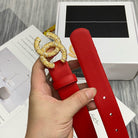 CC BELT 30MM BUCKLE GOLD DIAMOND LEATHER RED