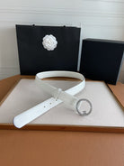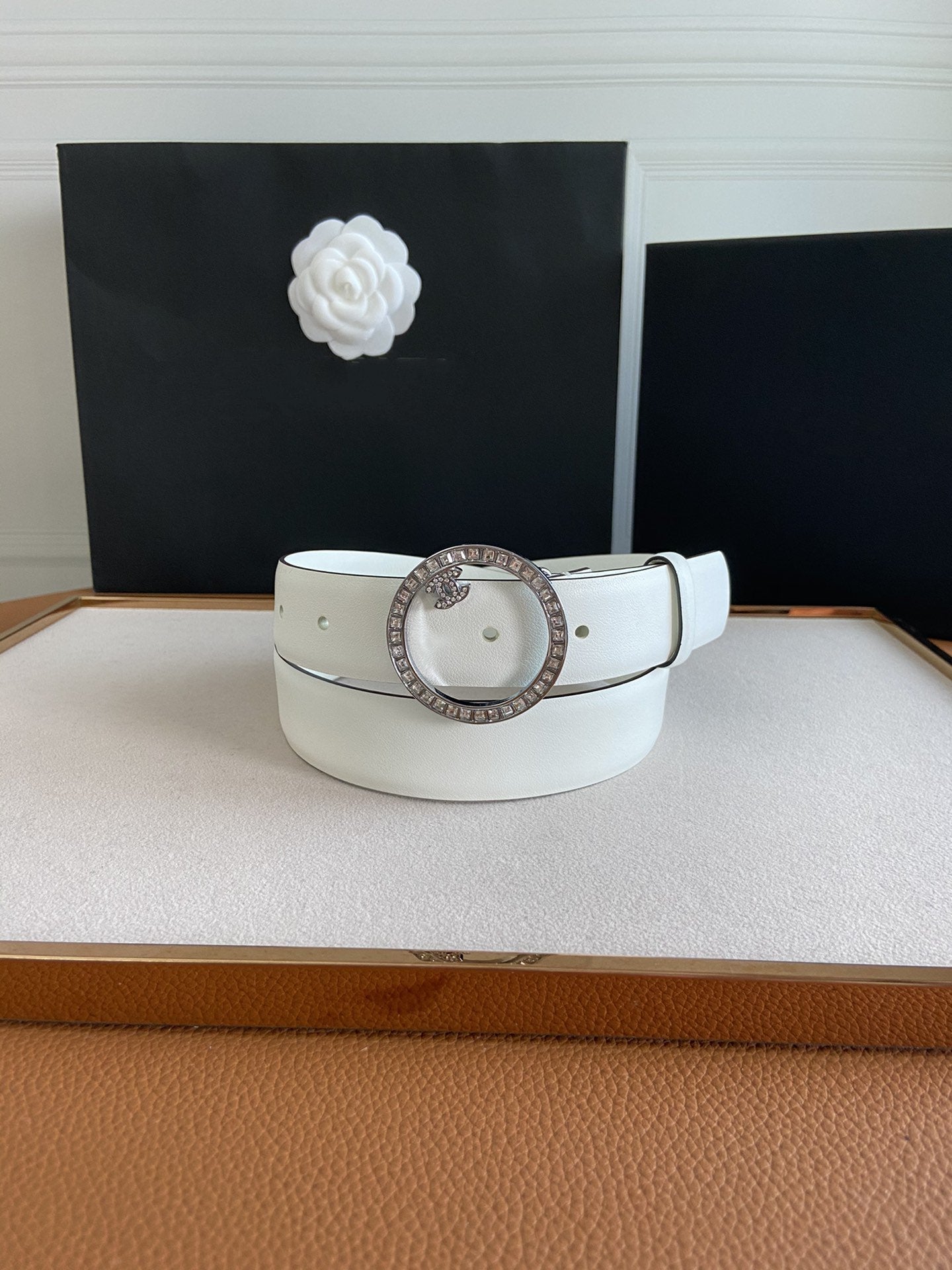 CC BELT 30MM BUCKLE SILVER DIAMOND LEATHER WHITE