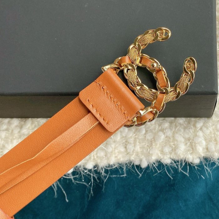 CC WOMEN'S BELT 3.0CM BUCKLE MULTICOLOR LEATHER BROWN