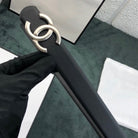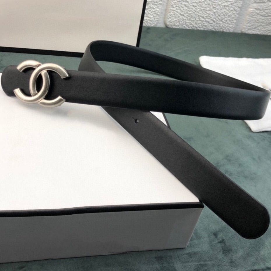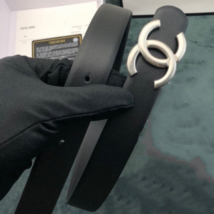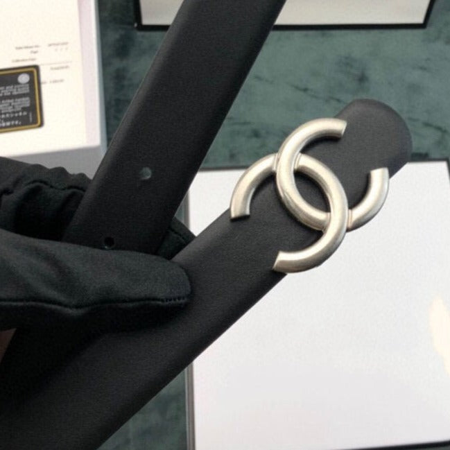 CC WOMEN'S BELT 3.0CM LEATHER BLACK BUCKLE SILVER CONVEX