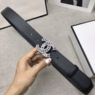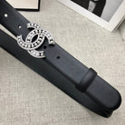 CC WOMEN'S BELT 30MM LEATHER BLACK BUCKLE SILVER PEARL DIAMOND