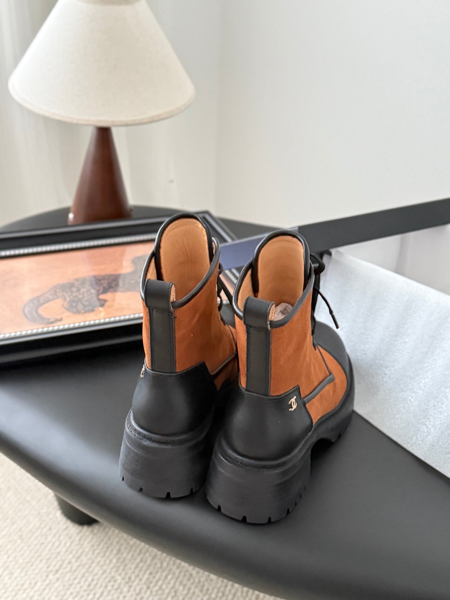 CC 25 ankle boots burnt orange black suede sheepskin 458766