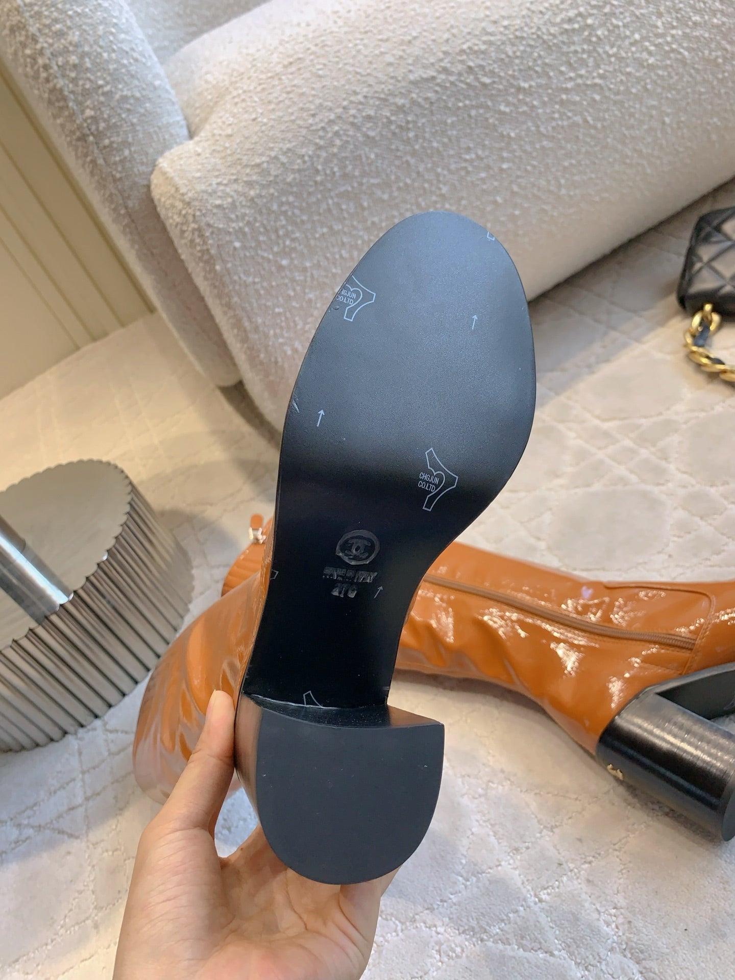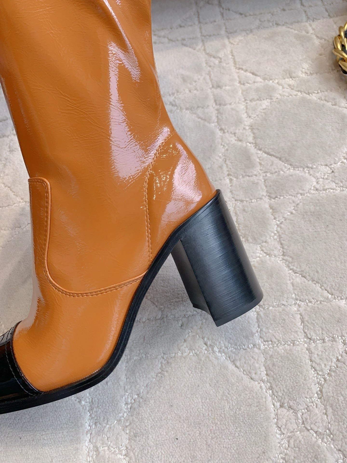 CC 25 Heeled Long Boot Caramel Brown mix Black Patent Leather 516682