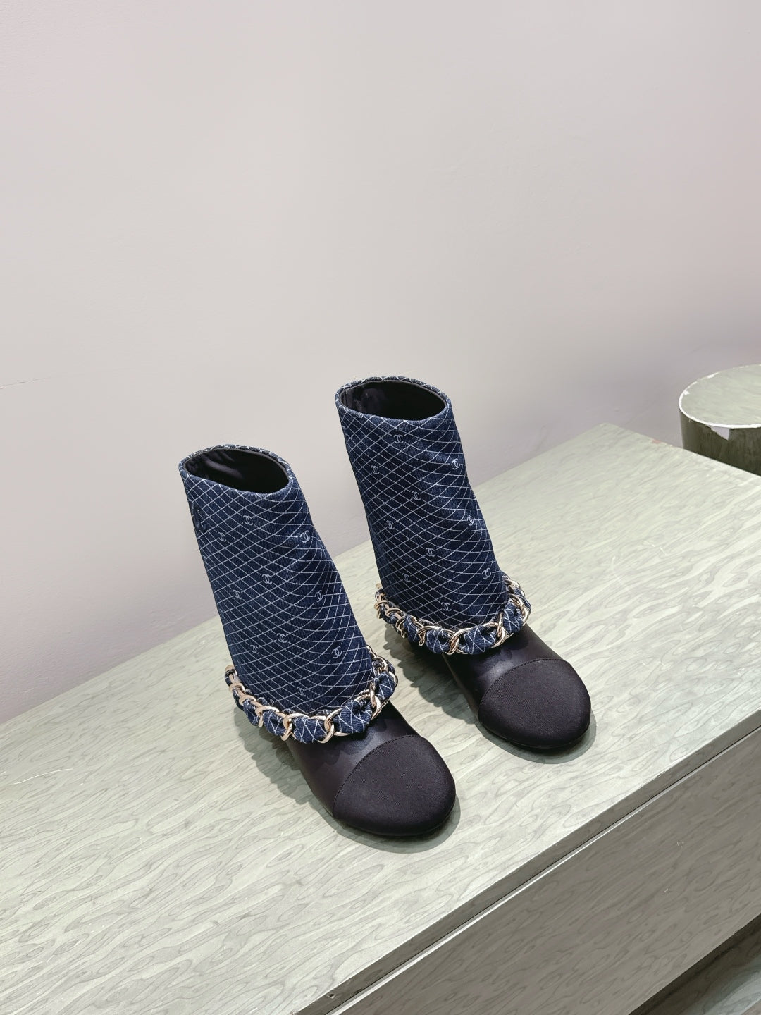CC 25 Short Boot Navy Blue Black Denim Fabric Calfskin 515266