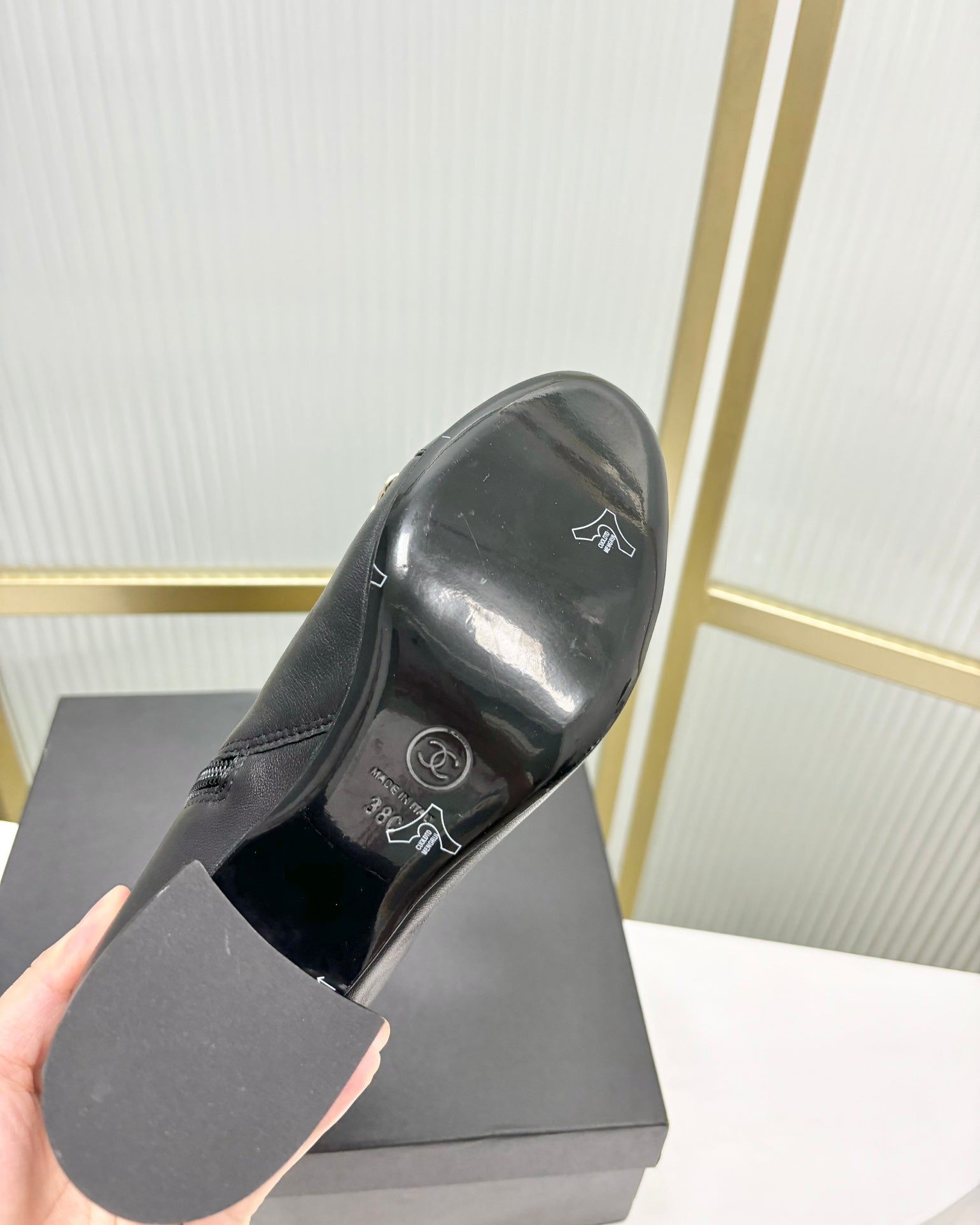 CC Ankle Boot 65 Black Calfskin Patent Calfksin Leather Strap