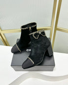 CC Ankle Boot 65 Black Suede Grosgrain Leather Strap