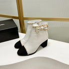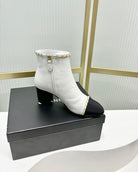 CC Ankle Boot 65 White Calfkin Black Grosgrain Leather Strap