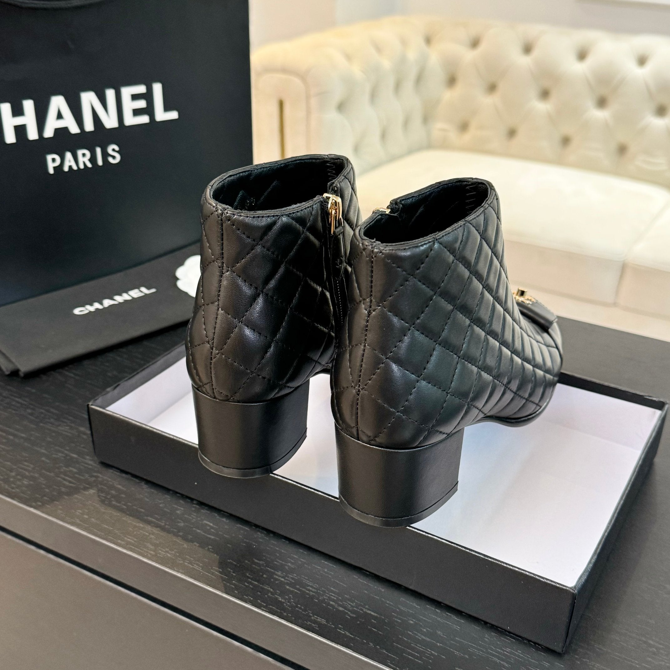 CC Ankle Boots 50mm Black Quilted Lambskin