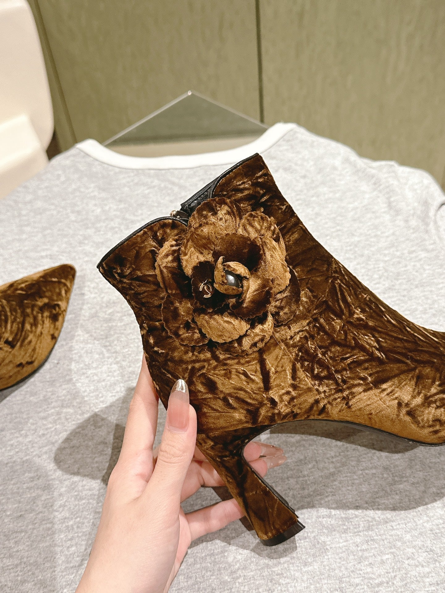 CC Ankle Boots 85mm Brown Yellow Rough Velvet Fabric