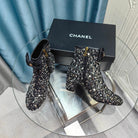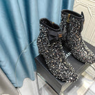CC Ankle Boots Black Bow Tweed Sequin Beaded Fabric