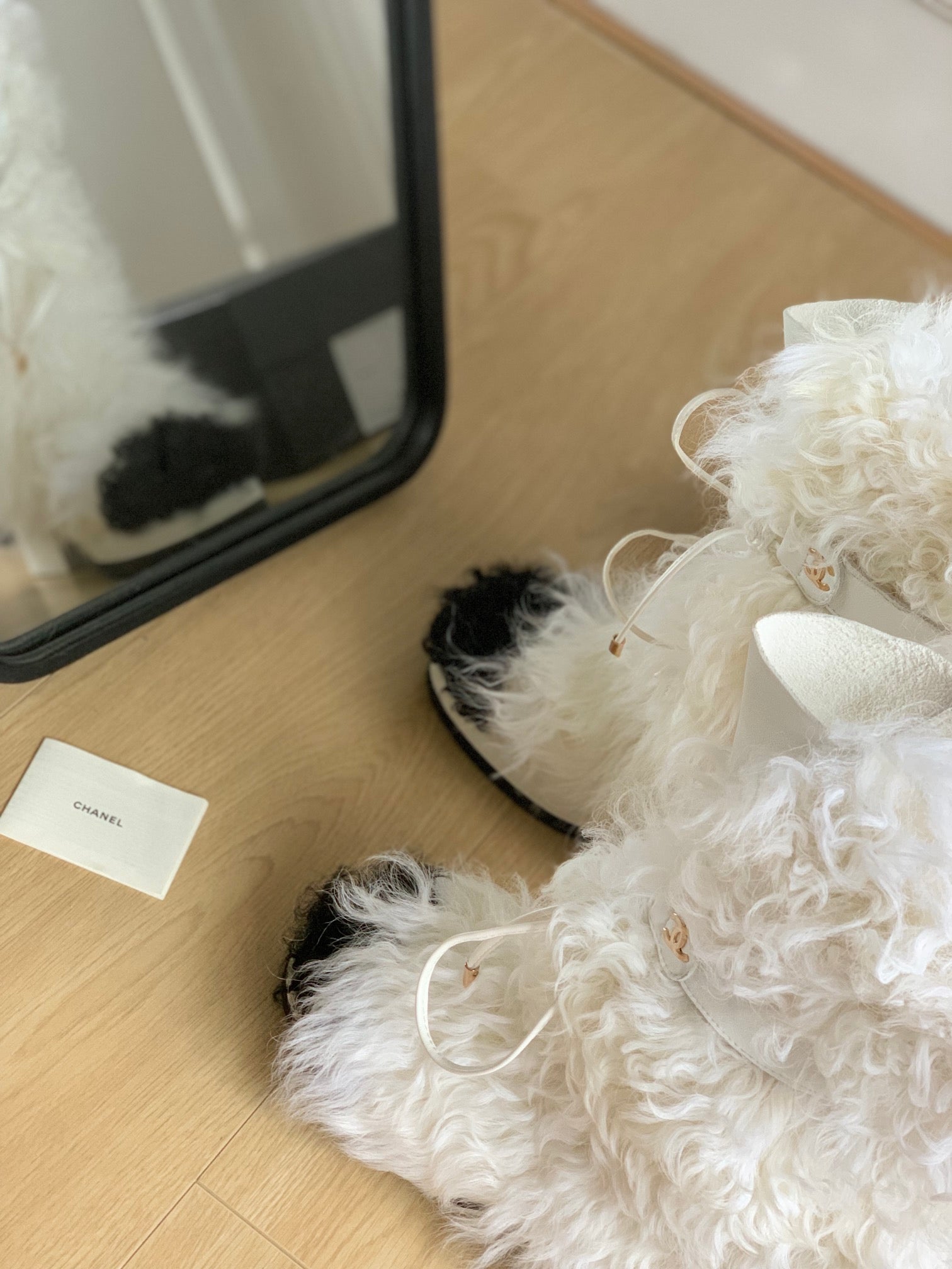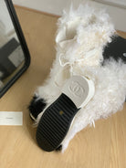 CC ANKLE HIGH BOOTS IN WHITE MIX BLACK WOOL FUR