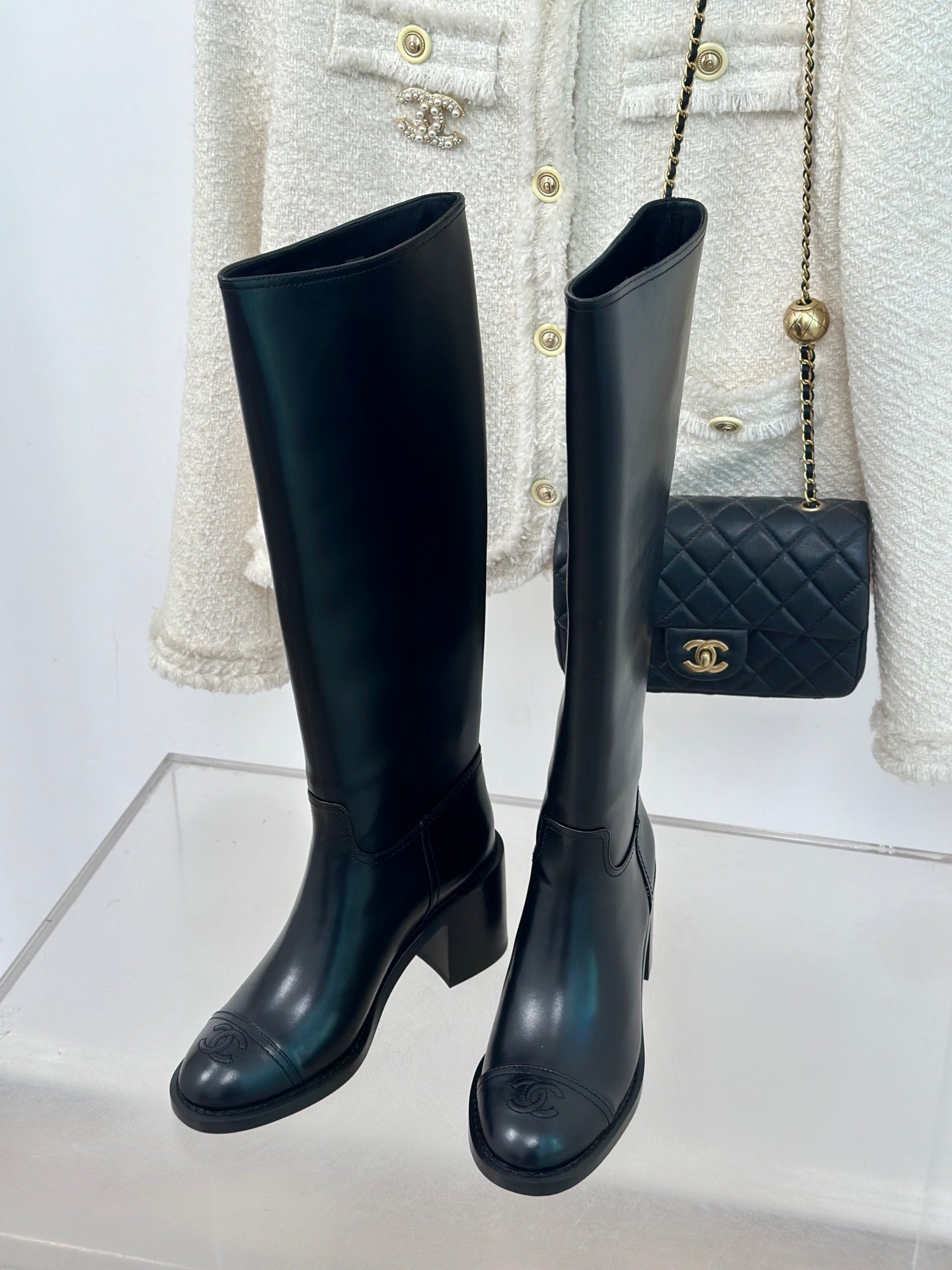 CC High Boots 70mm Plain Black Lambskin