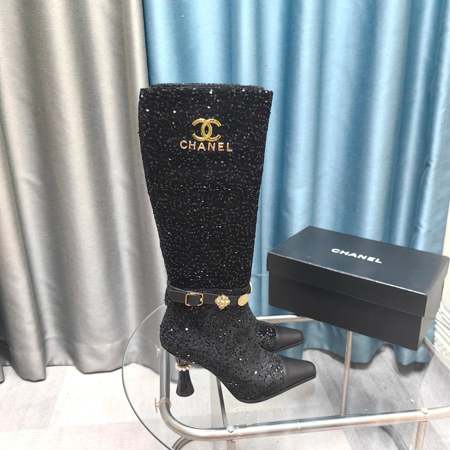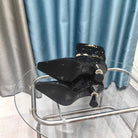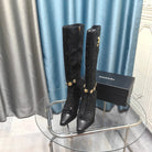 CC High Boots Black Beaded Fabric And Cowhide