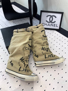 CC High-Top Canvas Boots Beige Black Denim Fabric 938050