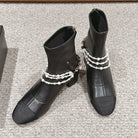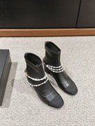 CC LOW CUT BOOTS IN BLACK STRETCH LAMBSKIN AND GROSGRAIN WITH PEARL CHAIN