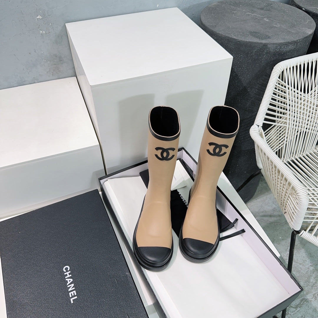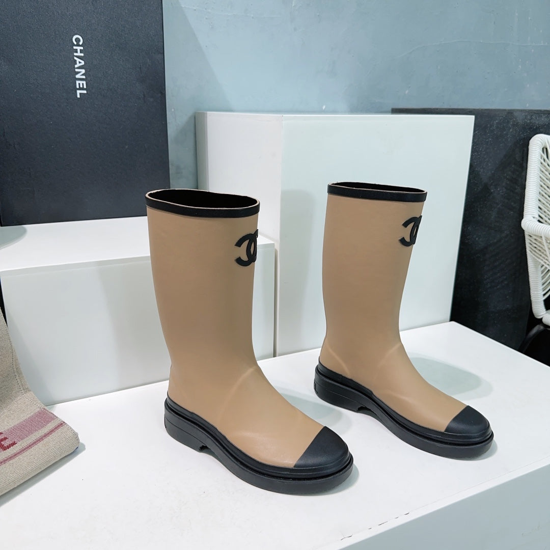 CC Rain Boot Beige Black Rubber