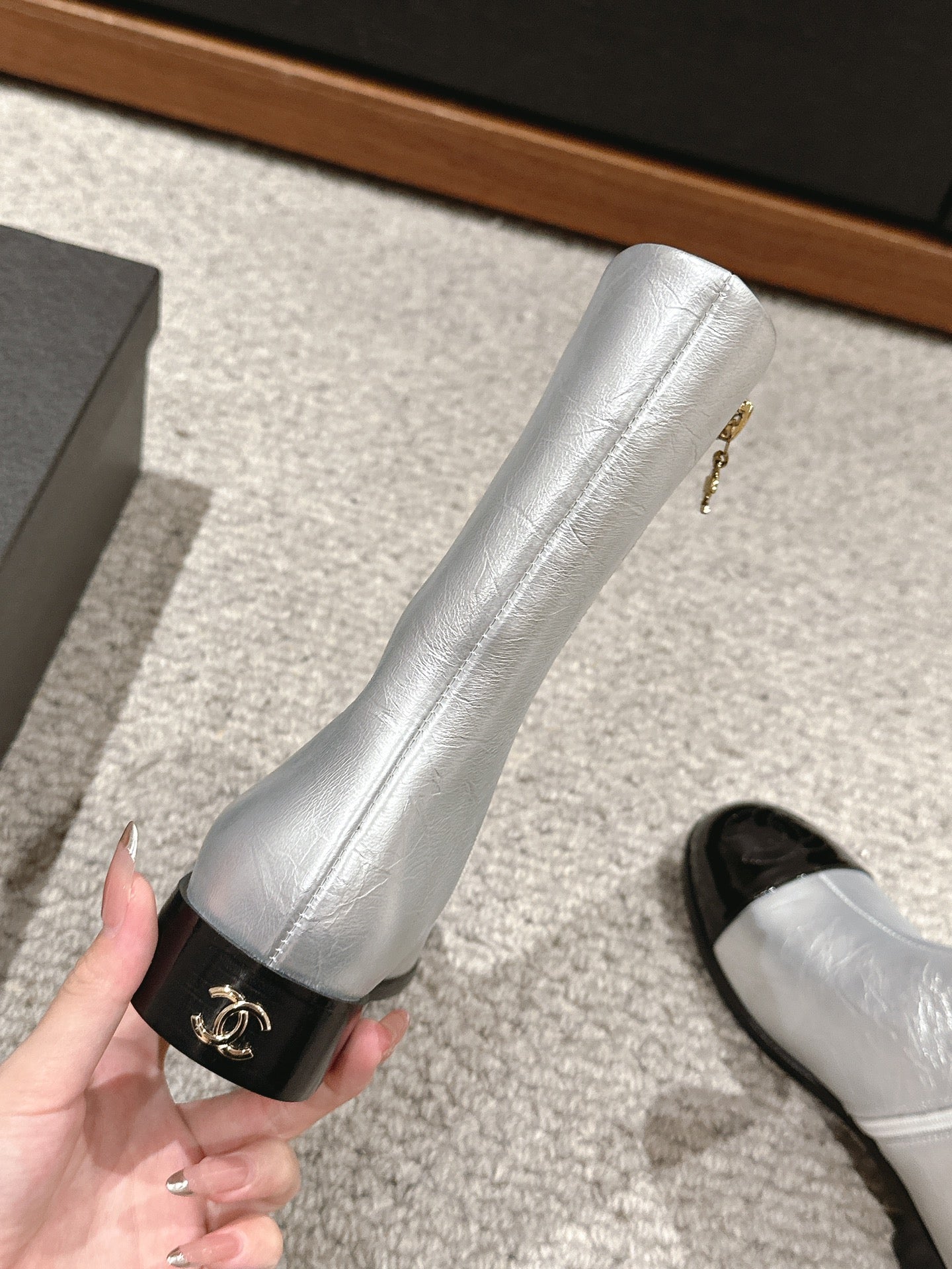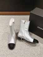 CC Short Boot Silver Metalic Lambskin Black Patent Calfskin
