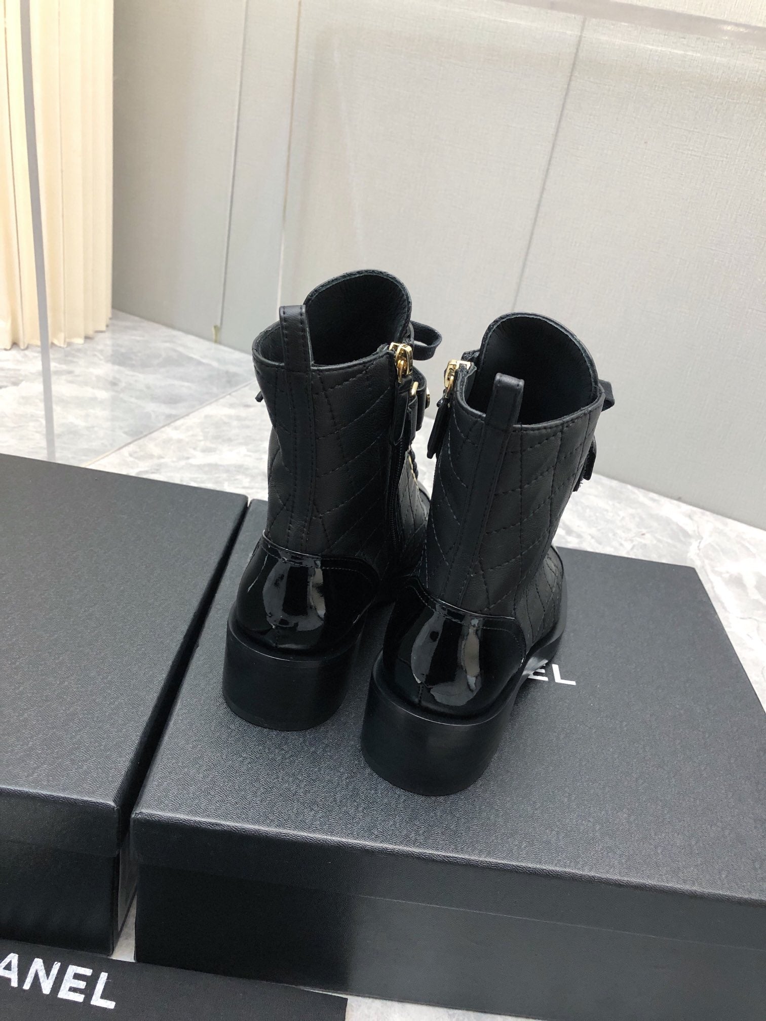 CC Short Boots 45mm In Black Quilted Lambskin And Glossy Cowhide 950042