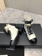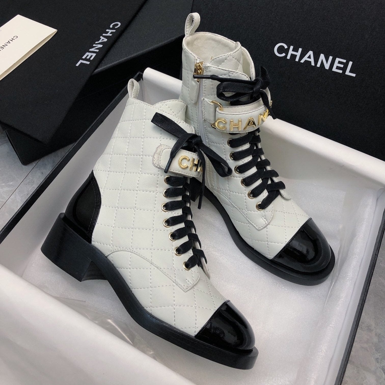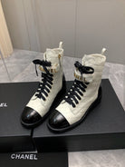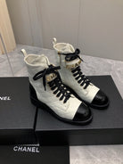 CC Short Boots 45mm In White Mix Black Quilted Lambskin And Glossy Cowhide 950036