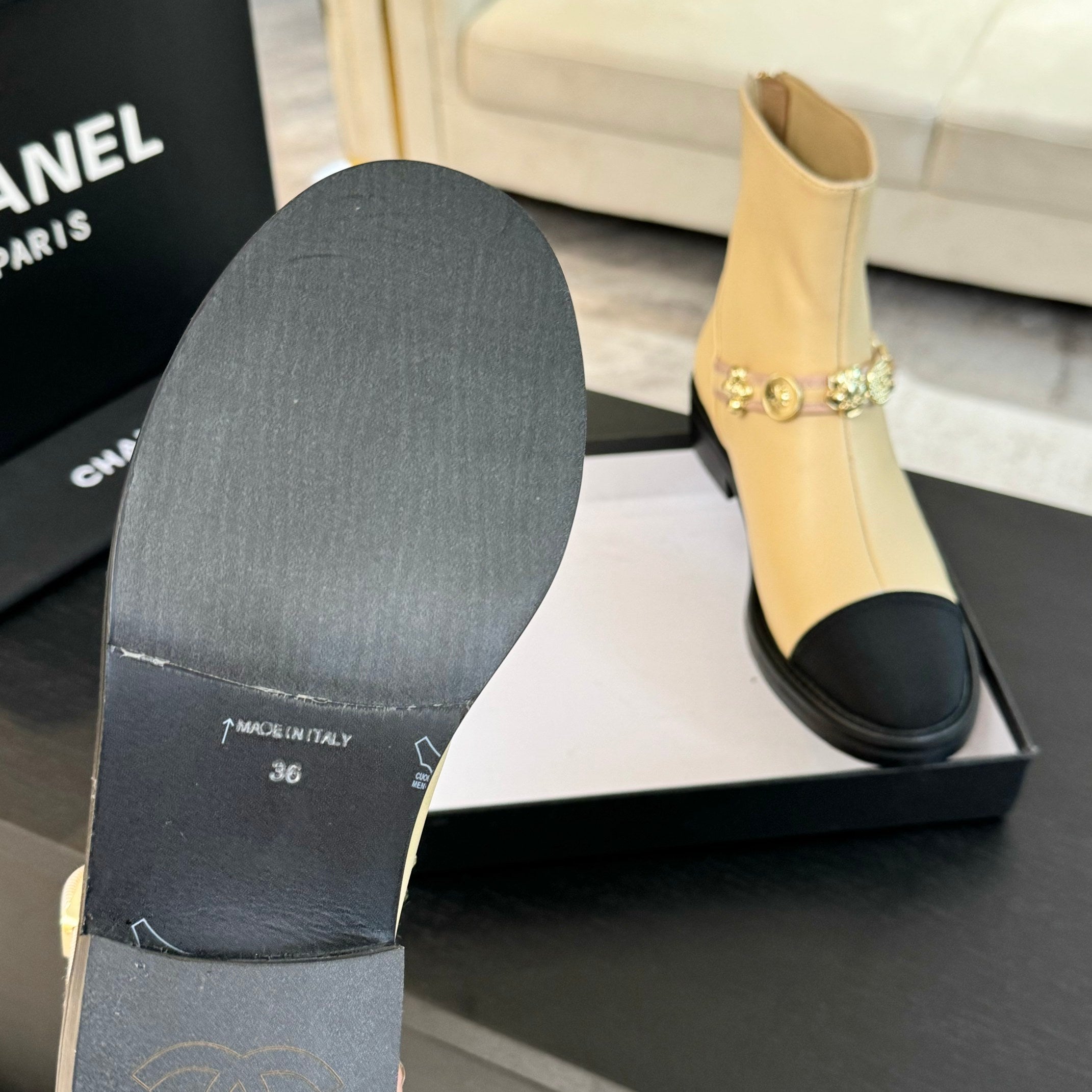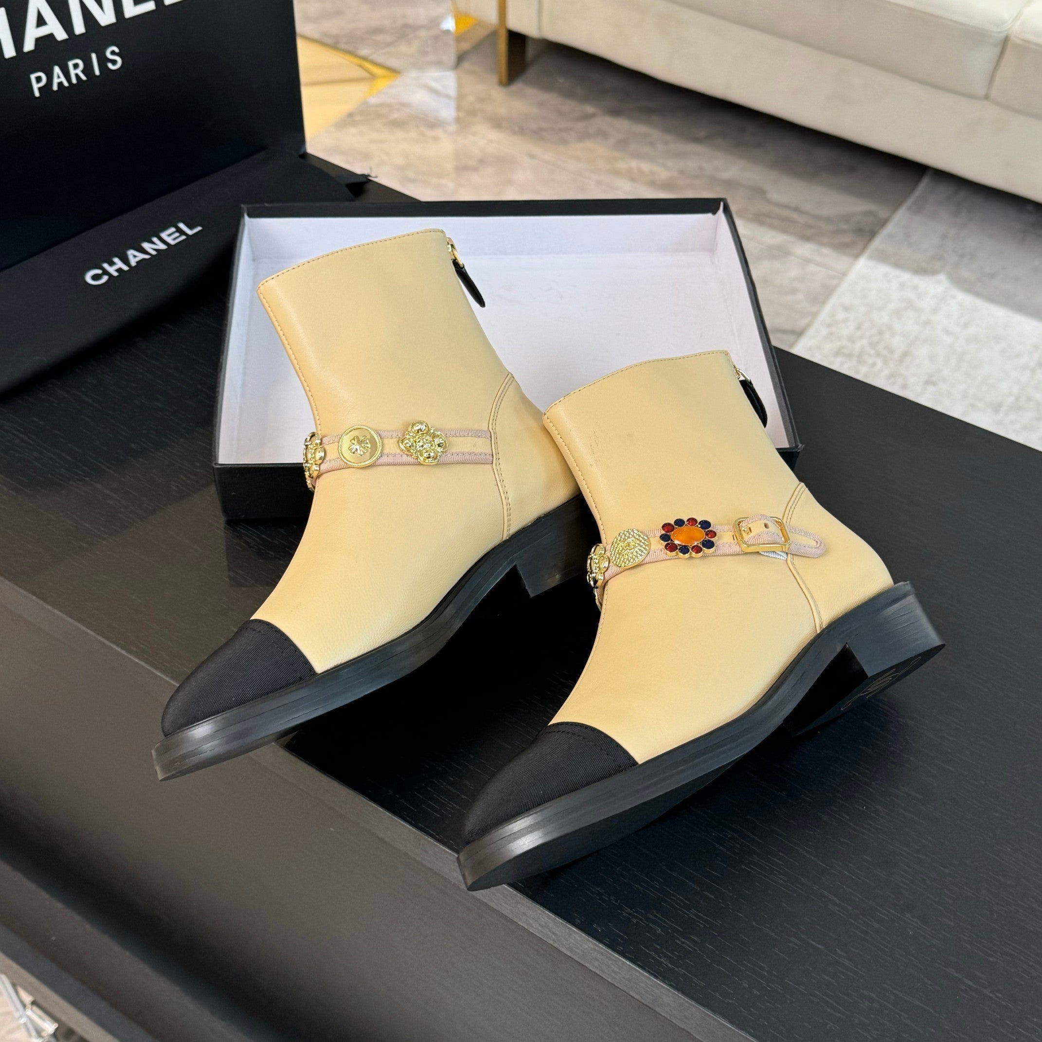 CC Short boots Beige Cowhide Mix Fabric Denim