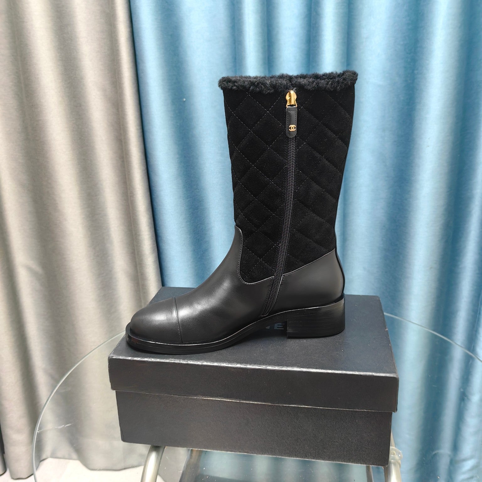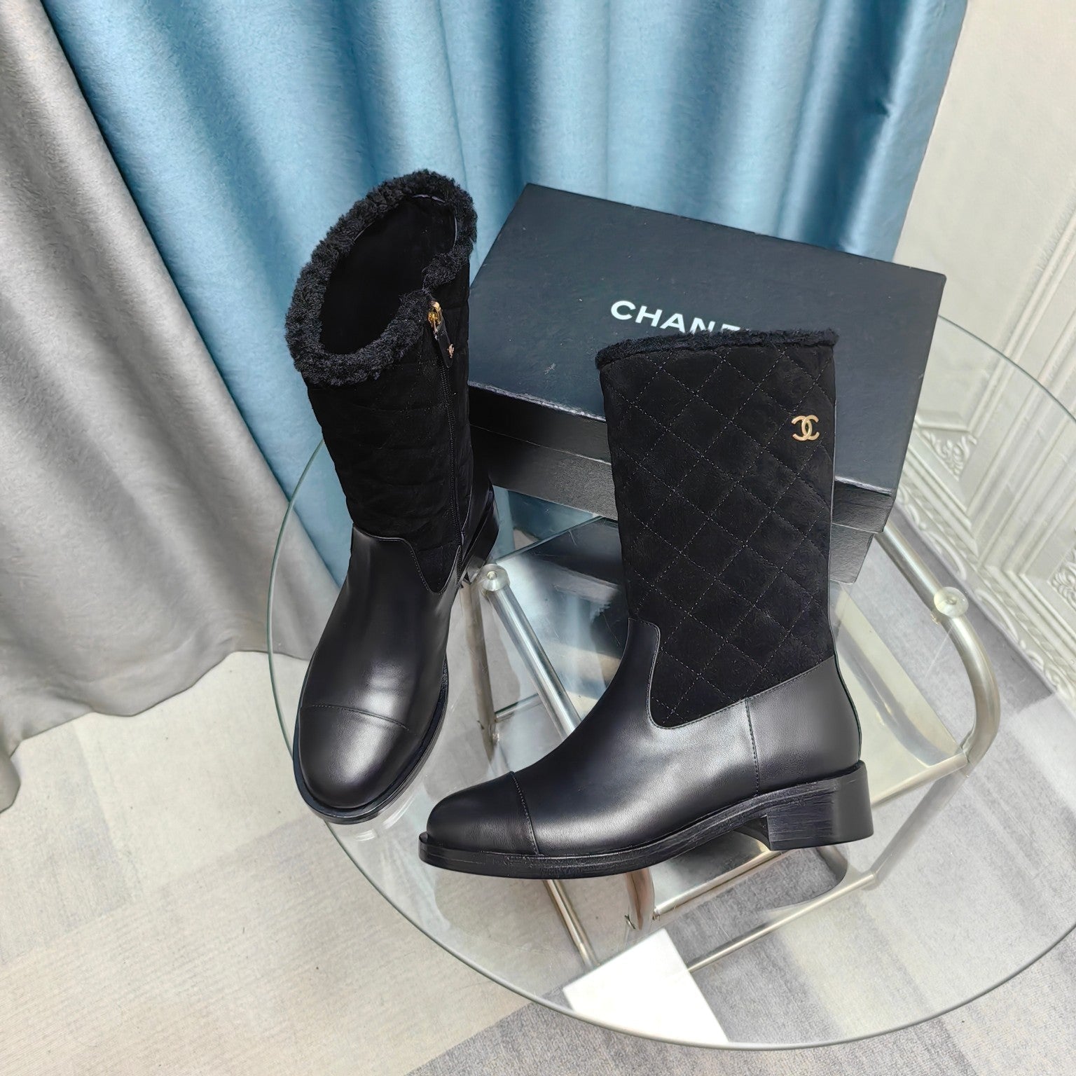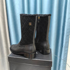 CC Short Boots Black Suede Lining Wool And Lambskin