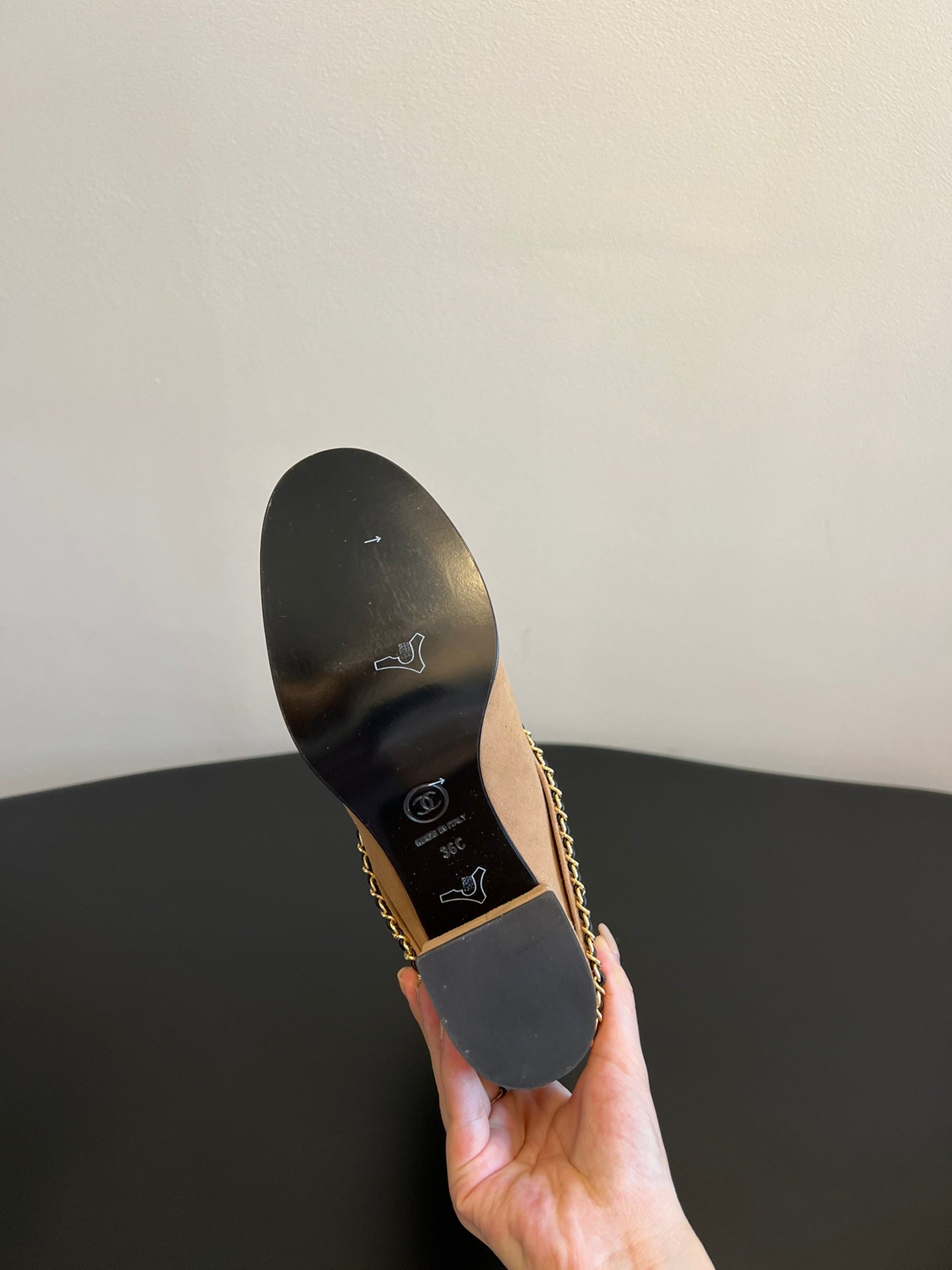 CC Short Boots Dark Beige With Chain Suede And Cowhide 944965