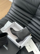 CC Ankle Boot Black Calfskin Grosgrain Leather Strap