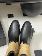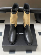 Chanel Boot 25 Beige mix Black Cowhide Suede 175368