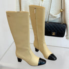 Chanel Double C Colorblock Heel Long Boot Beige Sheepskin 465418
