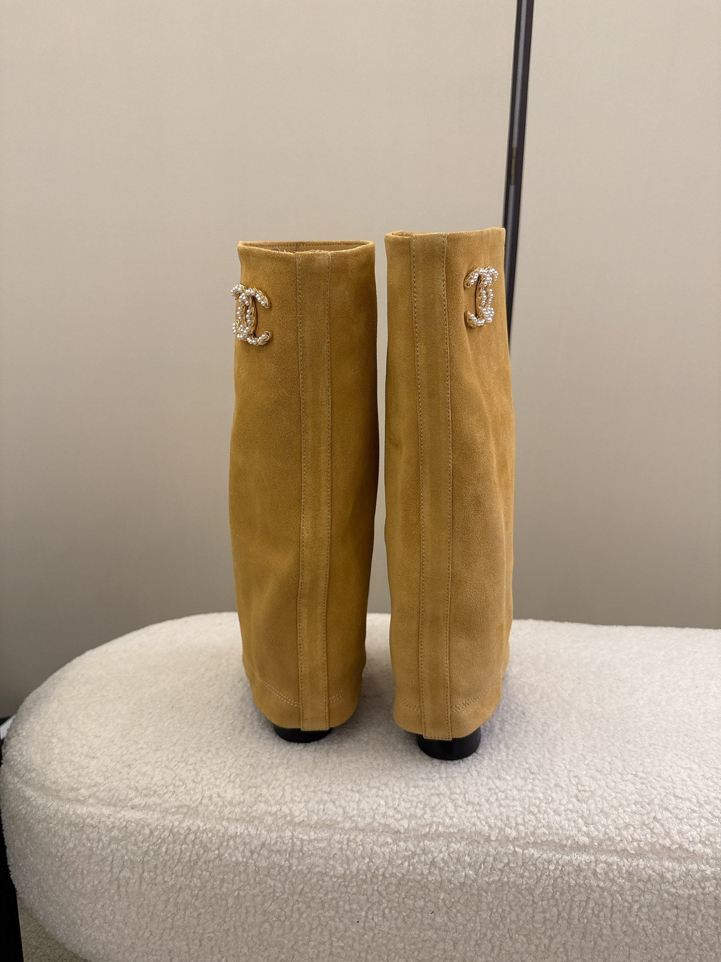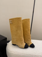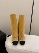 Chanel High Boot Beige Black Suede Leather 175157