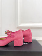 CC High Mary Janes 55mm Dark Pink Wool Tweed And Fabric 948817