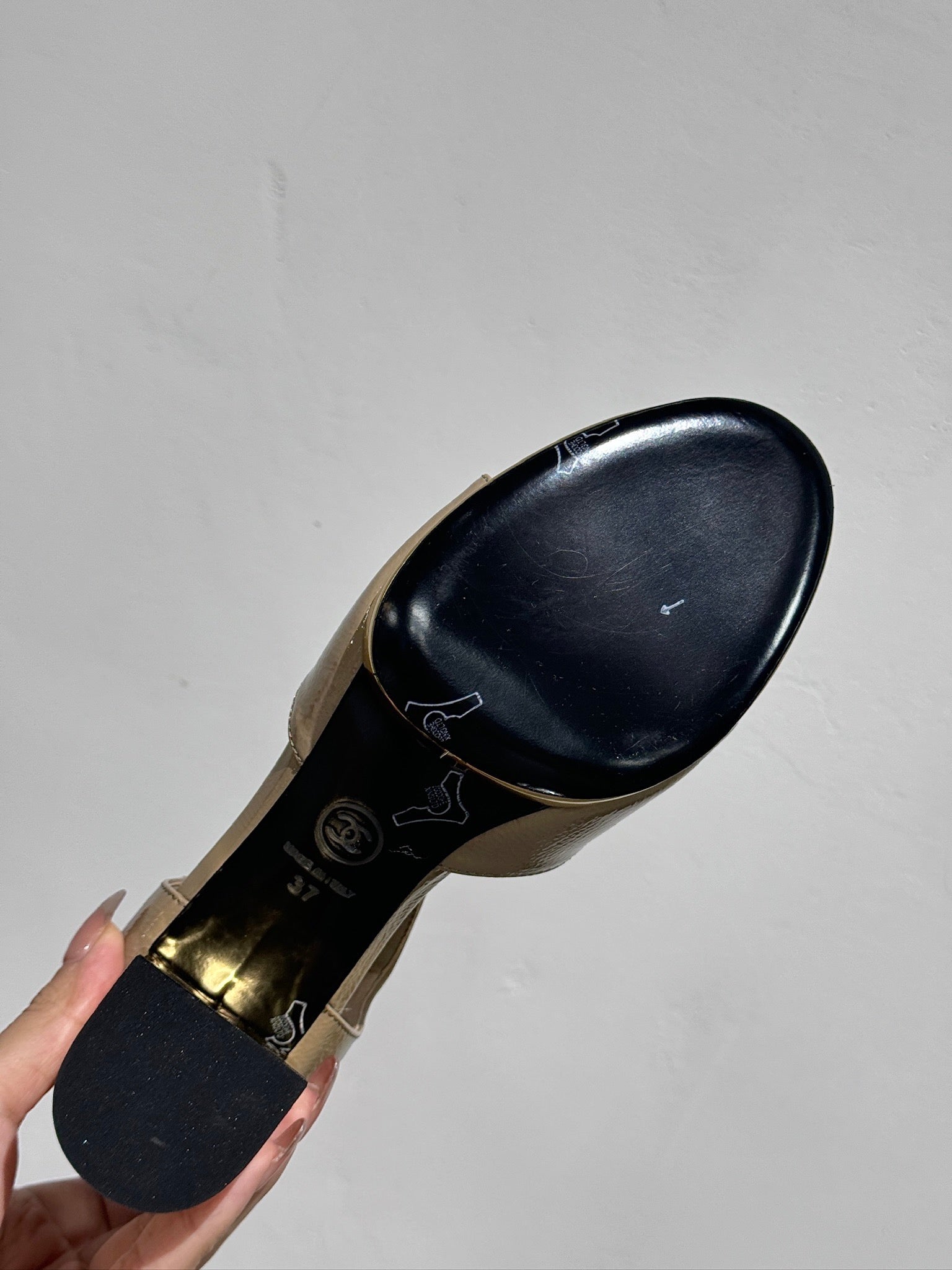 BLOCK HEEL SANDALS BEIGE SHEEPSKIN