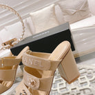 CC 25C Three Strap Sandal Mule High Heel Cream Sheepskin 213347