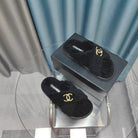 CC Crisscross Slippers Black Pattern Fleece Wool