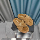 CC Crisscross Slippers Light Brown Pattern Fleece Wool